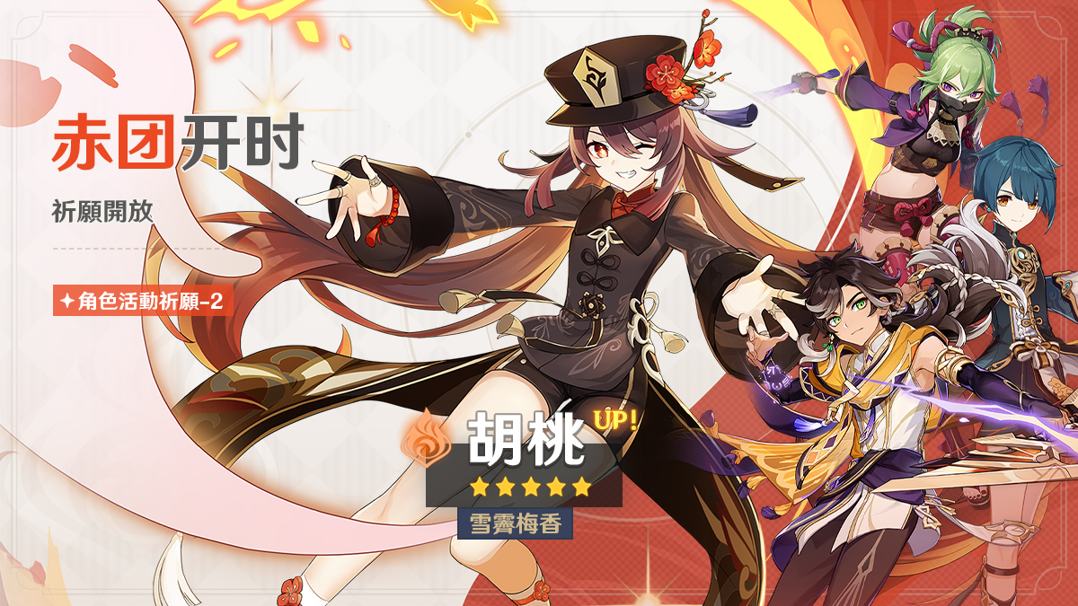 ●活動期間,限定五星角色「雪霽梅香·胡桃(火)」的祈願抽取機率將大幅提升!