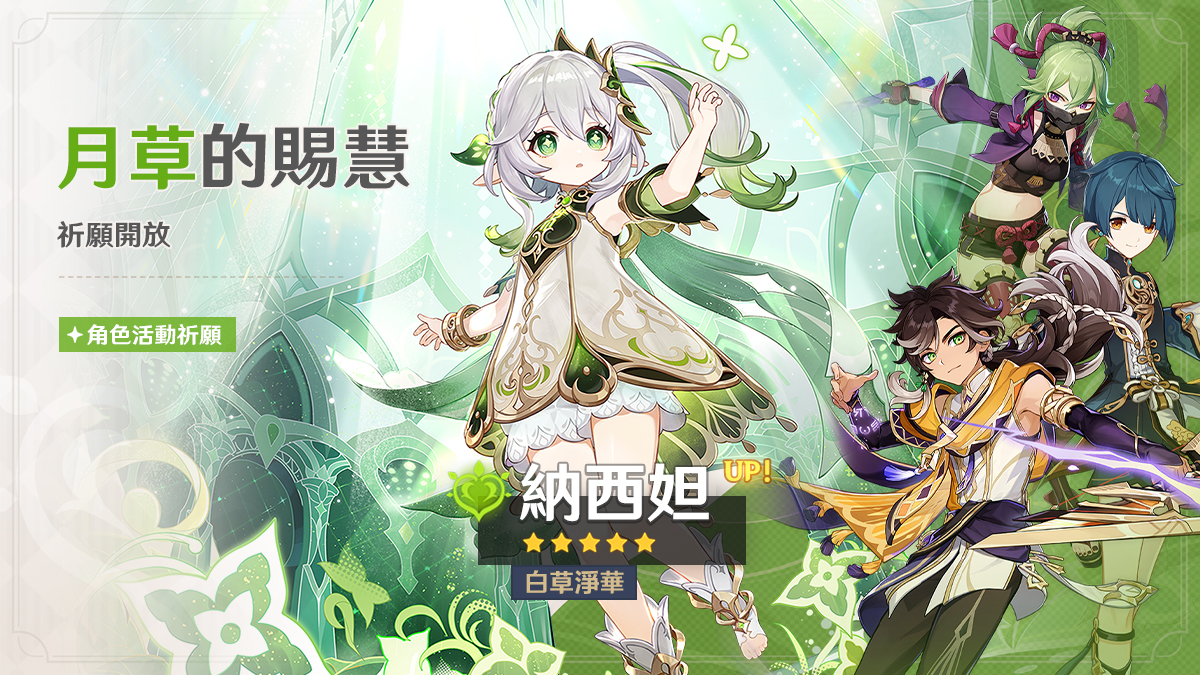 ●活動期間,限定五星角色「白草淨華·納西妲(草)」的祈願抽取機率將大幅提升!