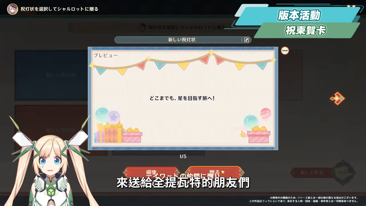 除了熱鬧的對決,總務司也設置了一些可以作小手工的攤位,可以根據夥伴的製作請求,作出寄託美好祝願的「祝柬」,獲得朋友們的認可與獎勵。這個祝柬我們可以根據自己的想法去創作獨一無二的樣式,來送給全提瓦特的朋友們,並獲得特別的「祝語紋樣」,同時也可以贈送給其他的旅行者朋友。