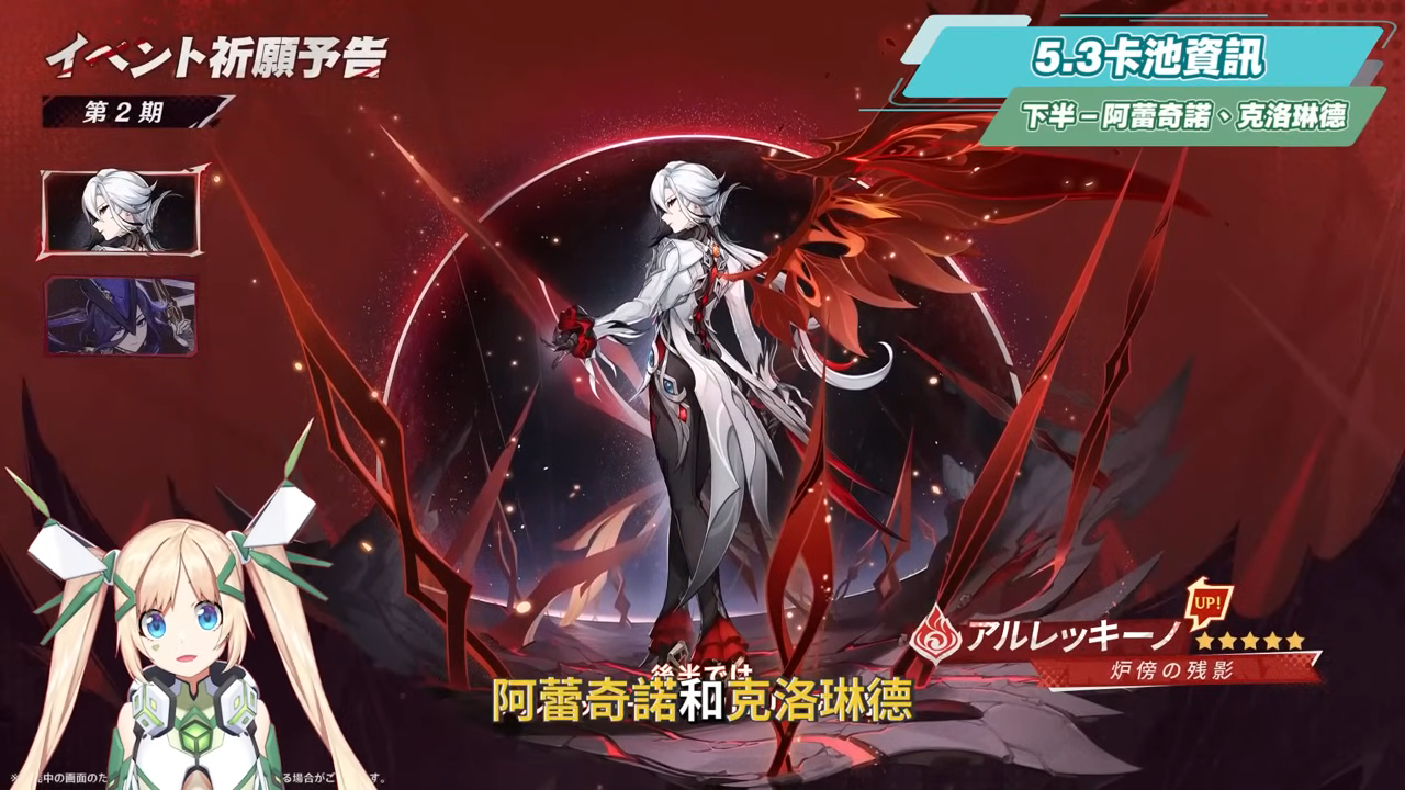 而下半卡池則是雙復刻楓丹的火C和雷C,阿蕾奇諾和克洛琳德,同一卡池也會加入全新的璃月四星角色-藍硯。
