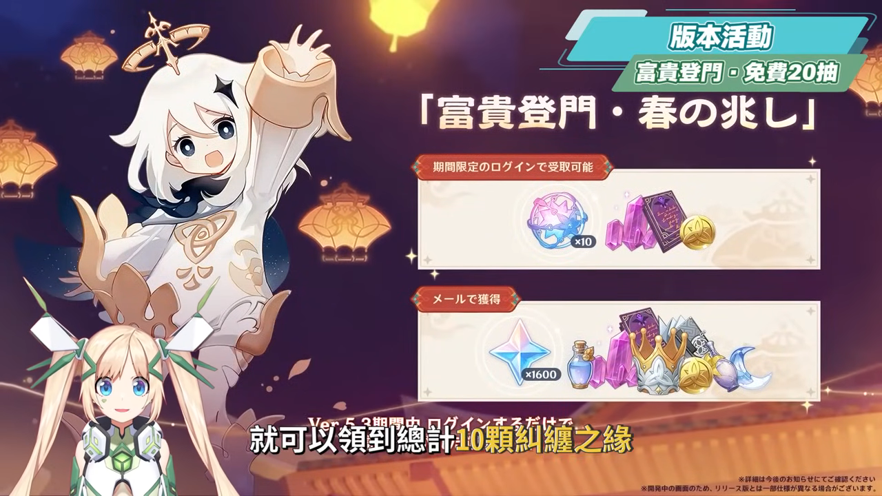 而海燈節版本期間也會有和以往一樣的富貴登門,只要完成限時簽到活動,就可以領到總計10顆糾纏之緣,而郵件中也可以領取到1600原石,以及智識之冕、祝聖之霜在內的養成資源。