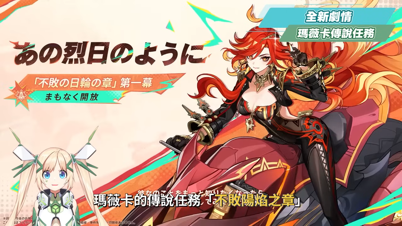 5.3版本也會實裝瑪薇卡的傳說任務「不敗陽焰之章」,只要完成魔神任務後,將會在夢中收到茜特菈莉告訴我們一則讓人震驚的消息,而知道了這個消息的瑪薇卡也表示他一定要親自出面。因此我們會再次和納塔的夥伴們一起,參加前所未有的歸火聖夜巡禮,也會在調查的途中遇到一隻有著奇怪口頭禪的小絨翼龍,後續會遇到什麼樣的事件、而瑪薇卡又會有什麼樣的反應,就等到時候在劇情中實際體驗了。完成瑪薇卡的傳說任務也同樣可以獲得相關的培養素材。而除了剛才的內容,官方也在前瞻先行釋出了一部份瑪薇卡的動畫短片預告,可以在裡面看到500年前的瑪薇卡,預計會在12/23曝光。