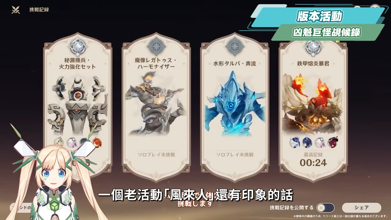 老玩家們若是對於先前的一個老活動「風來人」還有印象的話,這次的活動「凶魁巨怪*候錄」也將會是一個高難度的戰鬥關卡,需要集結角色挑戰4個強大的首領級敵人,官方也表示這次的難度將會非常、非常、非常考驗大家的心理承受能力,這次的卡池安排已經非常、非常、非常考驗大家的錢包能力了,就連活動也不放過我…不過活動可以邀請其他玩家進行雙人挑戰,因此屆時可能也會考驗是否有大腿朋友的交際能力。