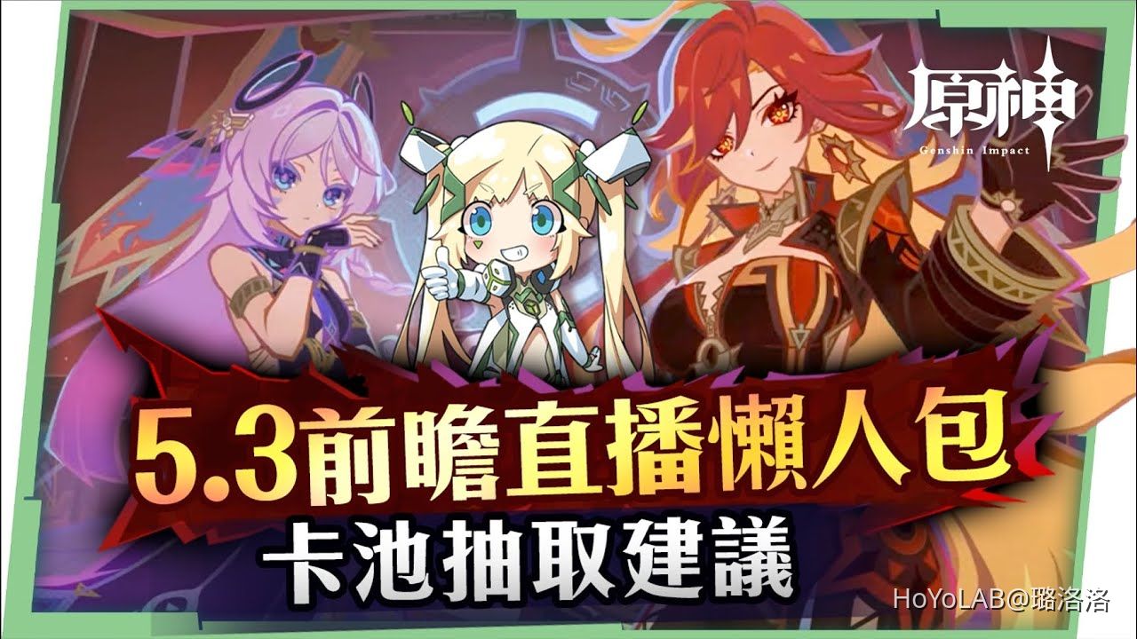 這次要帶來的是《原神》5.3前瞻直播重點懶人包,這次版本火神終於登場,並且會在明年的1/1成為我們在《原神》看到的第一個太陽,不過這次上半卡池也是相當考驗大家的錢包,因為在上半卡池,將會一次推出2位納塔全新五星角色瑪薇卡和茜特菈莉,下半卡池則是將會雙復刻阿蕾奇諾和克洛琳德,還有全新四星角色藍硯,關於這次的卡池應該如何規劃?洛洛也會帶來5.2版本的卡池抽取建議,而關於官方沒有補充到的其他改動與優化,洛洛也會將相關內容一起整理在稍後的影片中,海燈節的活動也可以領取到免費新衣裝以及20抽,後面也會帶來本次的版本活動以及一些更新與優化唷!
