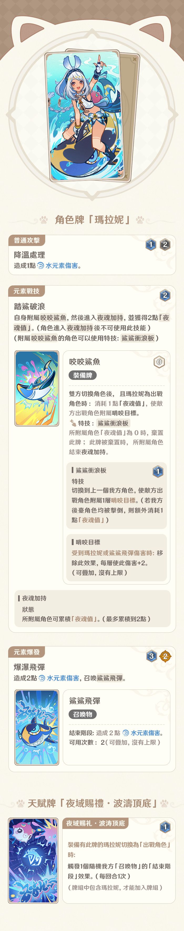 旅行者好呀,5.3版本更新後,「七聖召喚」玩法將新增角色牌「瑪拉妮」、「克洛琳德」和對應天賦牌,以及六張新的行動牌,還有部分卡牌平衡性調整,一起來看看吧~