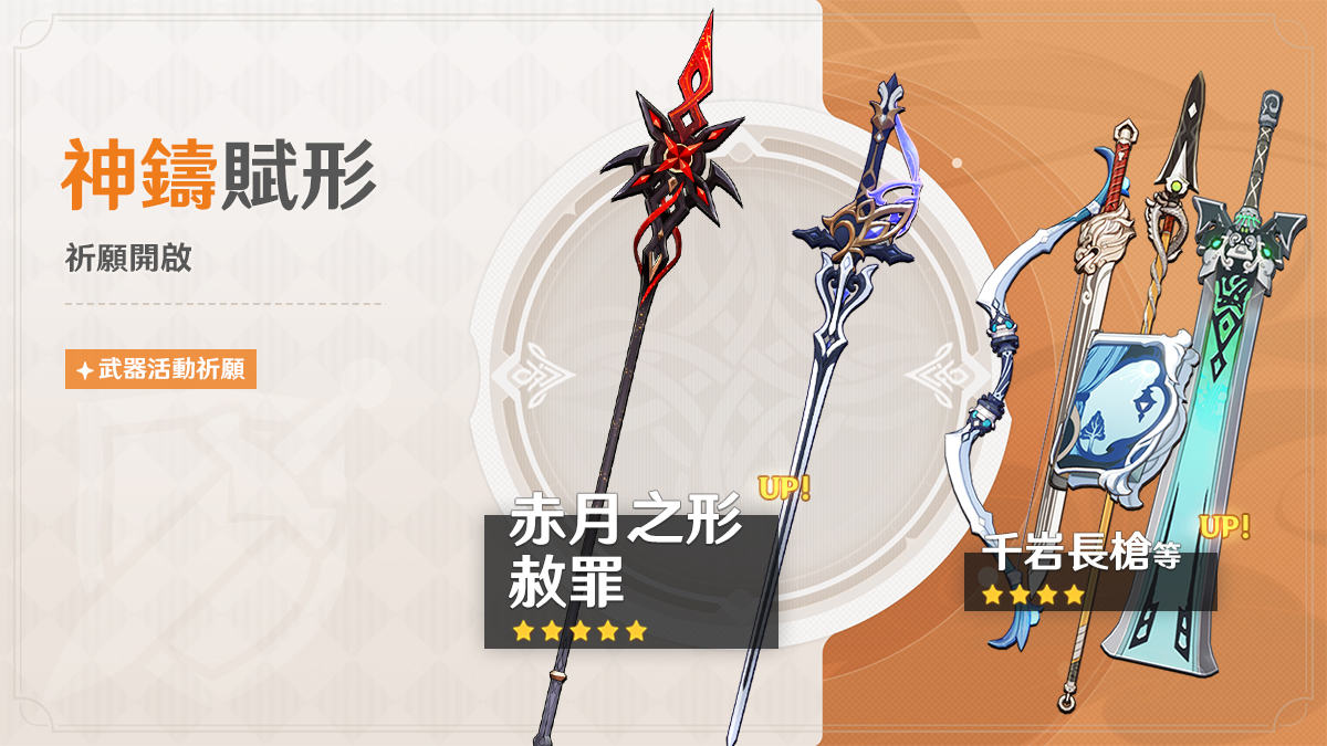 「神鑄賦形」祈願:「長柄武器·赤月之形」、「單手劍·赦罪」機率UP!