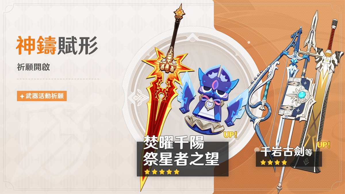 「神鑄賦形」祈願:「雙手劍·焚曜千陽」、「法器·祭星者之望」機率UP!