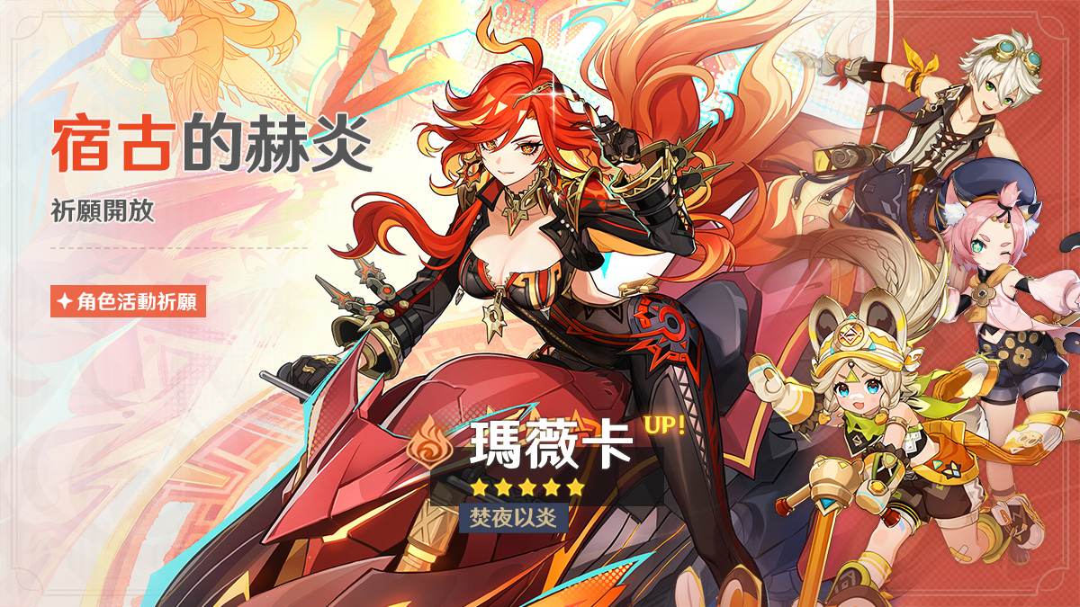●活動期間,限定五星角色「焚夜以炎·瑪薇卡(火)」的祈願抽取機率將大幅提升!