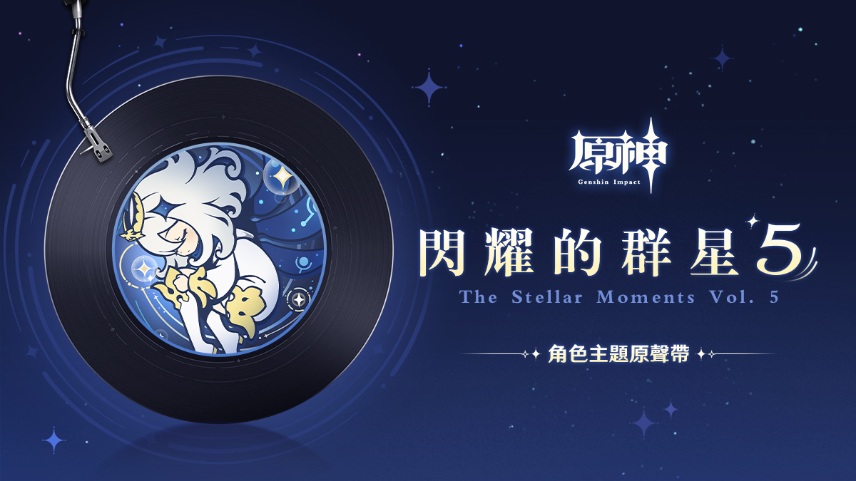 《原神》第五張角色主題原聲帶《閃耀的群星5 The Stellar Moments Vol. 5》正式上線,共收錄32首由HOYO-MiX音樂團隊為《原神》遊戲角色創作的原聲音樂。