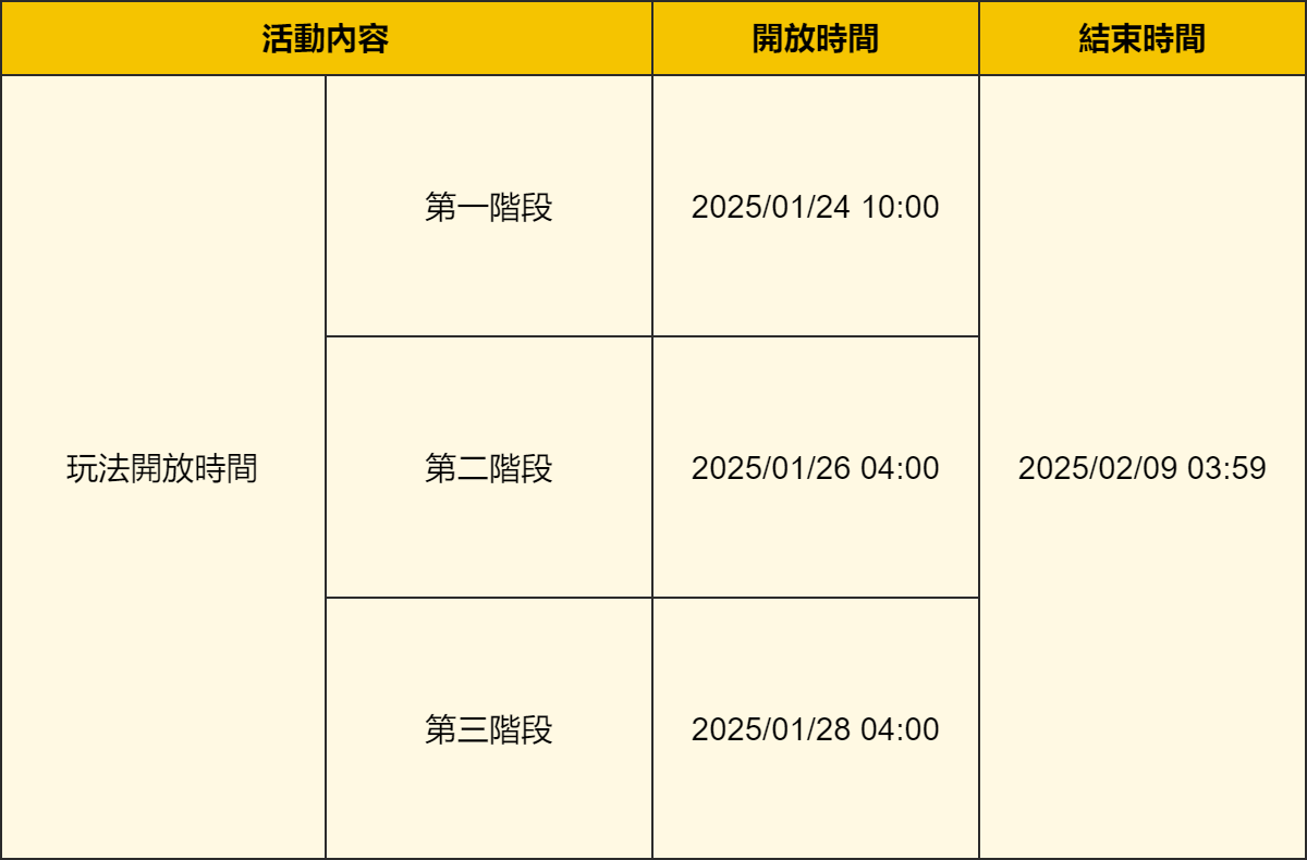 ● 活動期間,將陸續解鎖「八奇亂鬥」、「燈下演武」、「如意祝柬」、「節慶旅記」各階段玩法。