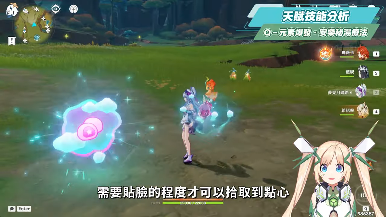 解鎖4命後,大招的點心就不會再受到當前生命值的限制,可以直接同時觸發風元素範圍傷害以及前台治療,並且每次拾取點心時還可以回復5點能量,最多20點,因此就算拿精通類武器也可以不帶充能沙,讓整個大招循環更舒適。