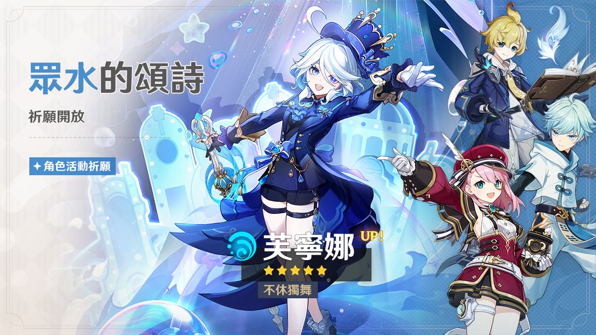 「眾水的頌詩」祈願:「不休獨舞·芙寧娜(水)」機率UP!