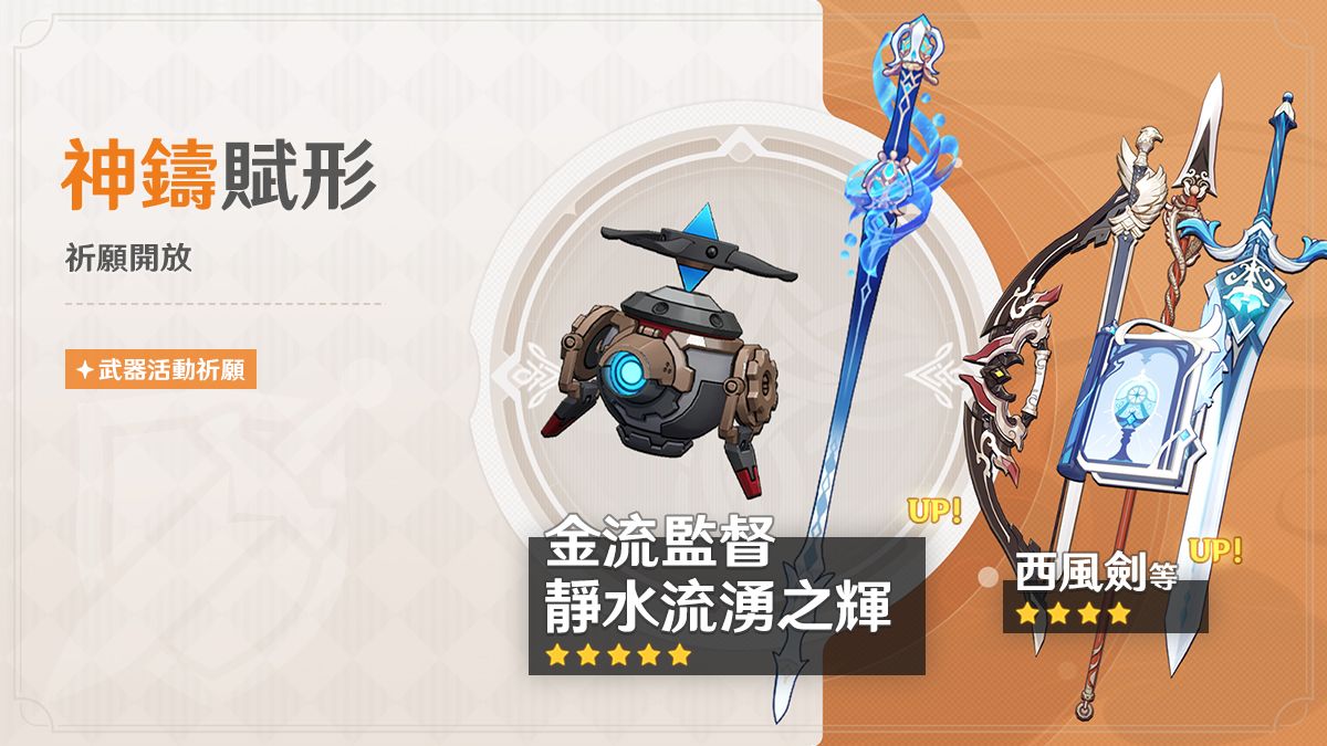 「神鑄賦形」祈願:「單手劍·靜水流湧之輝」、「法器·金流監督」機率UP!
