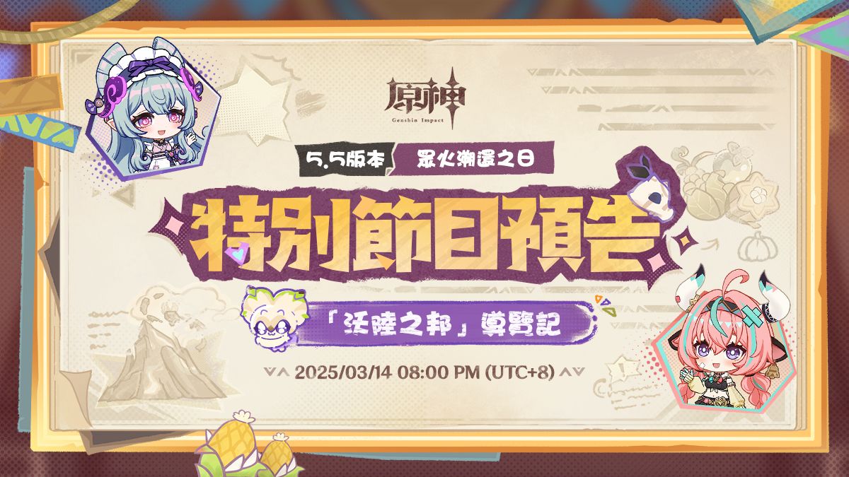 《原神》新版本特別節目將於 2025/3/14 20:00(UTC+8)在官方Twitch與YouTube頻道開播,