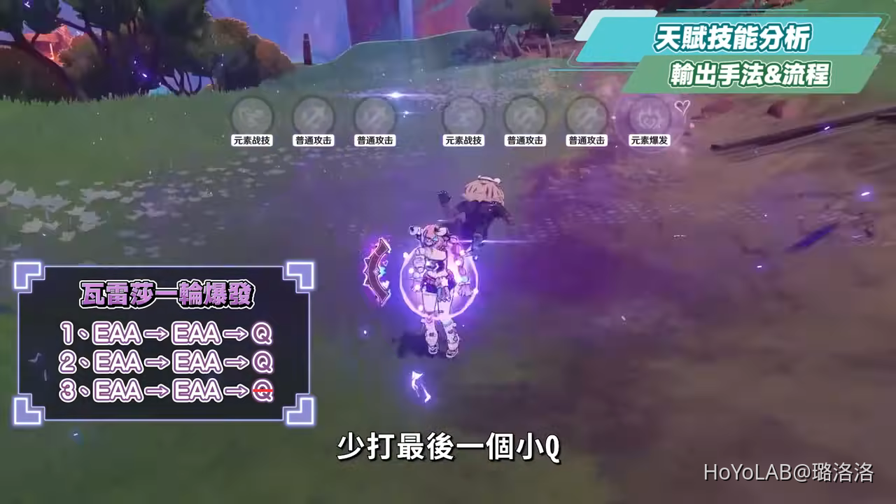 綜合前面所說的,瓦雷莎的輸出過程在戴面具的「熾熱激情」持續的15秒中,重複去打出EAAEAAQ,一輪爆發約12~15秒,可以打三套,所以也就會需要3個小Q,總共需要90點能量。