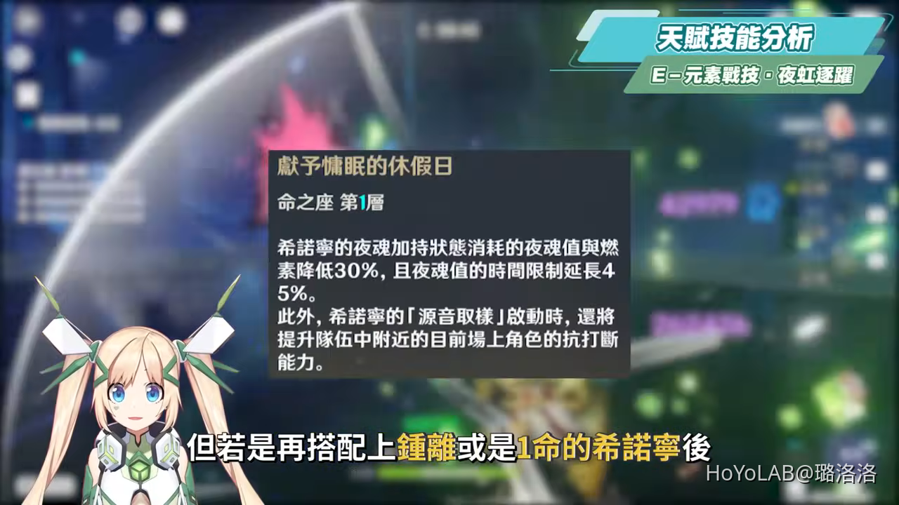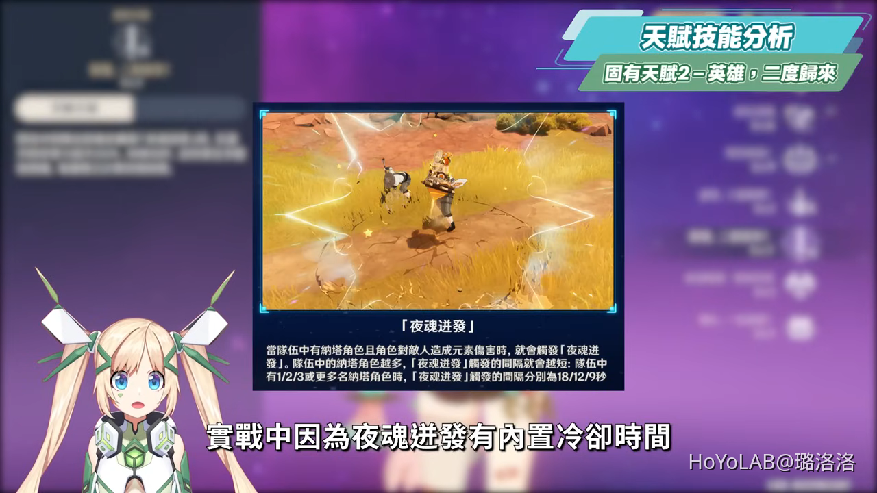 解鎖固有天賦2,瓦雷莎隊伍中的角色觸發夜魂迸發時,可以使自己獲得12秒的35%攻擊力提升,最多疊加2層,也就是最多70%,實戰中因為夜魂迸發有內置冷卻時間,若只有1名納塔人的話,要維持2層BUFF的覆蓋不一定那麼穩定,除非是配戴希諾寧,因為希諾寧天賦效果中觸發夜魂迸發後可以疊到2層,不過如果是搭配伊安珊的話,其實以伊安珊的輔助效果來看,也不會比起希諾寧差到哪裡去,更甚至是如果你要兩個一起帶的話,也是沒問題的。