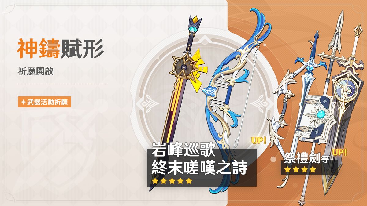 「神鑄賦形」祈願:「單手劍·岩峰巡歌」、「弓·終末嗟嘆之詩」機率UP!