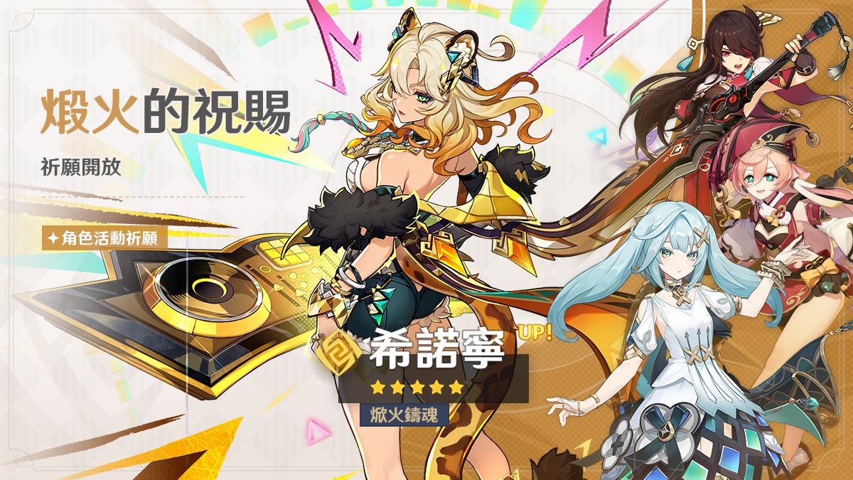 ●活動期間,限定五星角色「焮火鑄魂·希諾寧(岩)」的祈願抽取機率將大幅提升!
