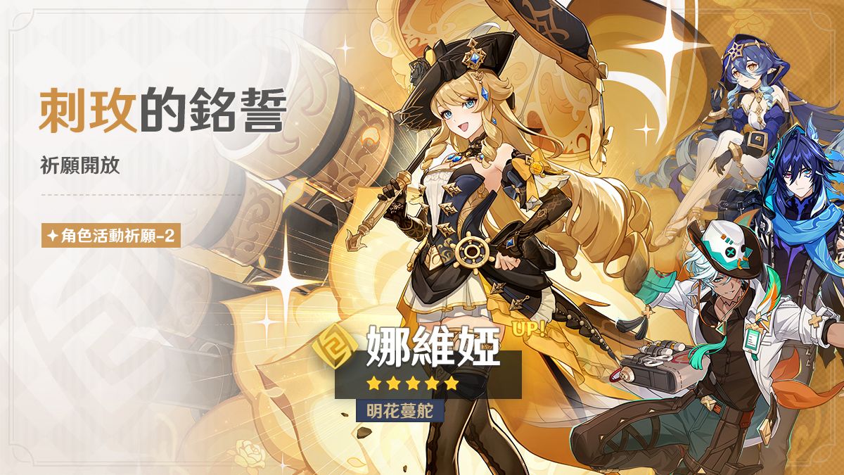 ● 活動期間,限定五星角色「明花蔓舵·娜維婭(岩)」的祈願抽取機率將大幅提升!