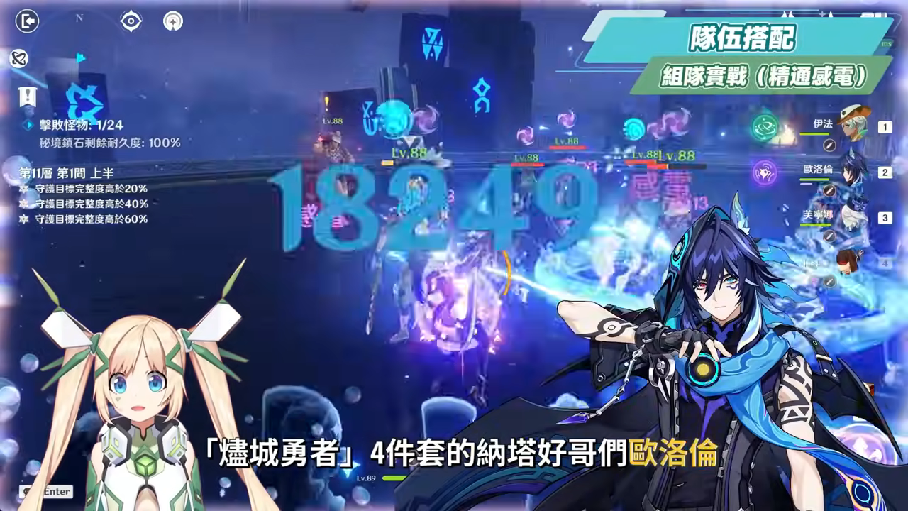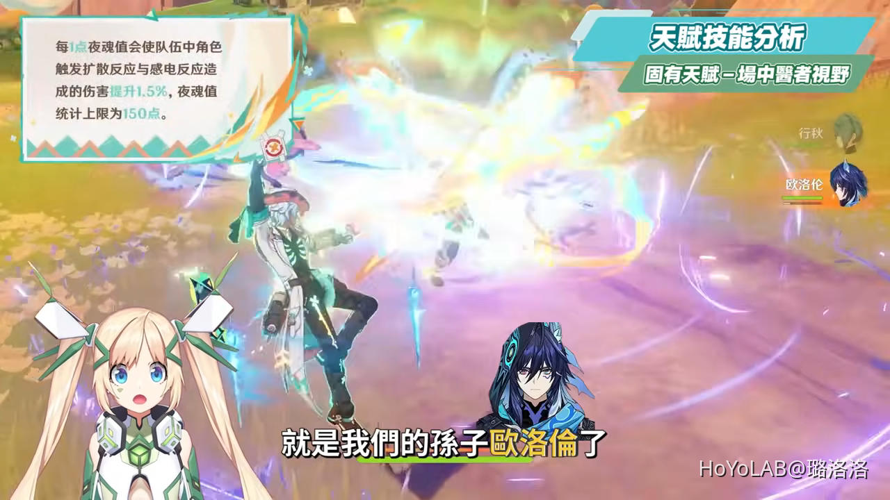 也因為天賦這樣的機制,就表示最好要有後台的夜魂值,同時又要能符合能觸發擴散或感電反應,由此也就可以知道伊法的組隊好哥們就是我們的孫子歐洛倫了。直接搭一個夜魂值上限80點的歐洛倫,就可以讓感電傷害翻倍。