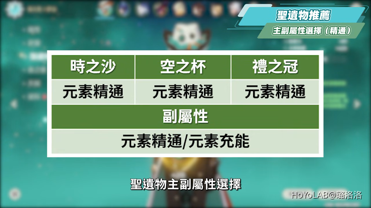 聖遺物主副屬性選擇,精通玩法聖遺物三個部件的主屬性全選精通,無腦把精通堆爆就對了。副屬性則可以多堆元素精通和元素充能。