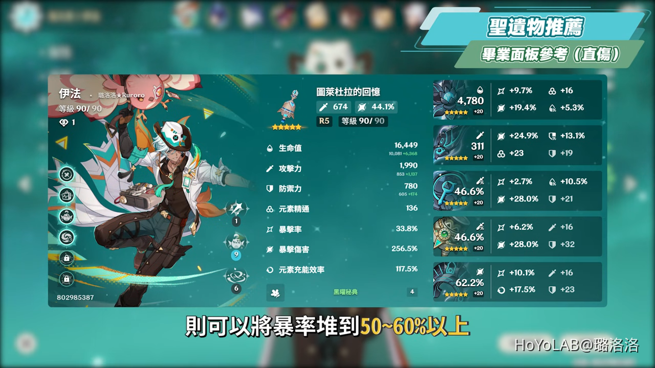 標籤:0命 5.6 Genshin Impact RURORO 伊法 原神 命座 培養 培養放大鏡 平民 擴散感電 攻略 機制解析 武器 璐洛洛 畢業面板 聖遺物 角色 飛行神角