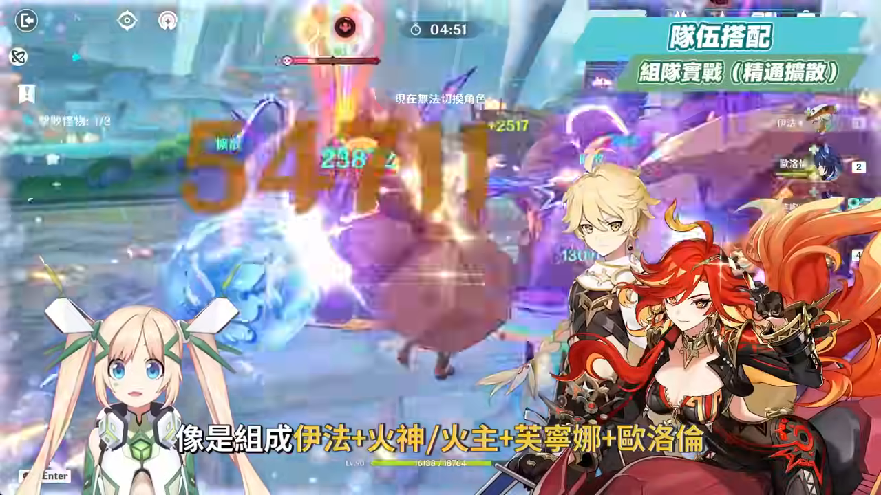 也因為伊法也可以提高擴散傷害,因此隊伍也可以組上一些後台能掛其他元素的納塔角色,像是組成伊法+火神/火主+芙寧娜+歐洛倫。同樣可以直接快樂亂炸。就像是下位版的夢見月瑞希。