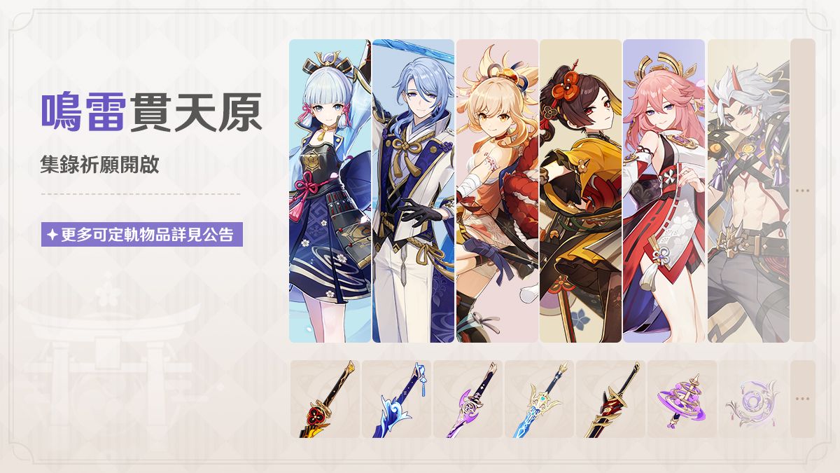 標籤:5.6 Genshin Impact 一心淨土 原神 回火之狩 基尼奇 山王長牙 巡火獵秘 影寂天下人 武器 活動祈願 祈願 神鑄賦形 草 薙草之稻光 角色 遊戲官方公告 長柄武器 雙手劍 雷 雷電將軍