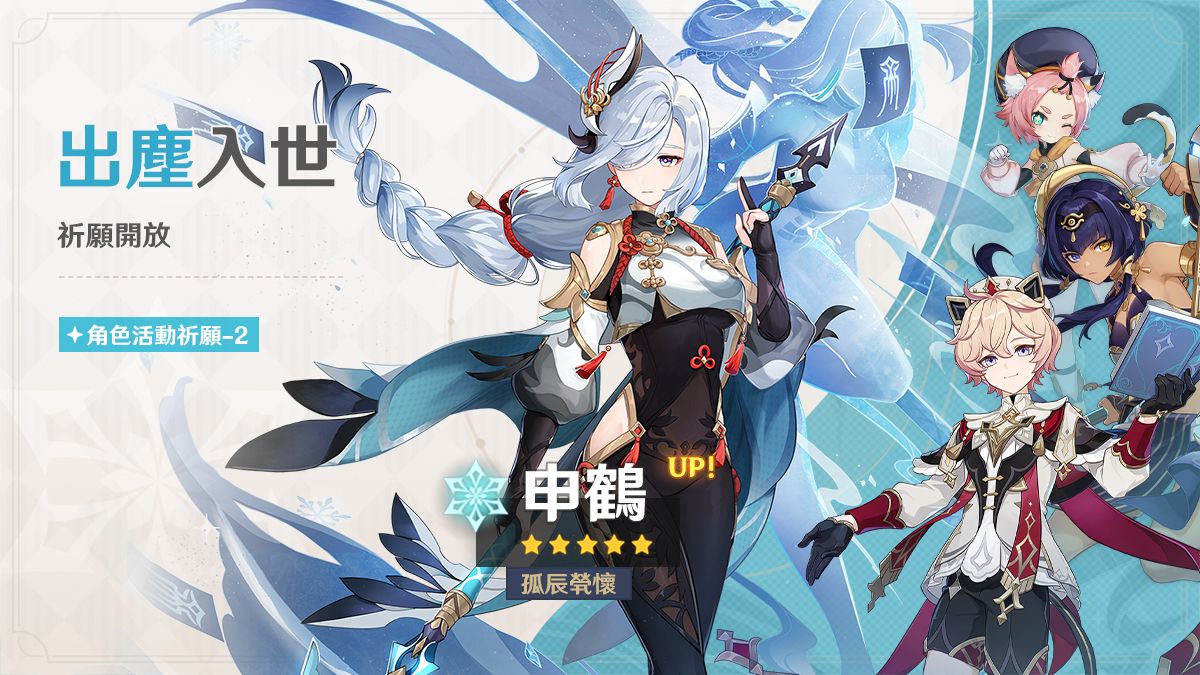 「出塵入世」祈願:「孤辰煢懷·申鶴(冰)」機率UP!