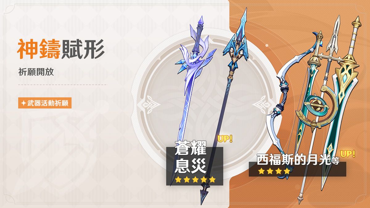 「神鑄賦形」祈願:「單手劍·蒼耀」、「長柄武器·息災」機率UP!