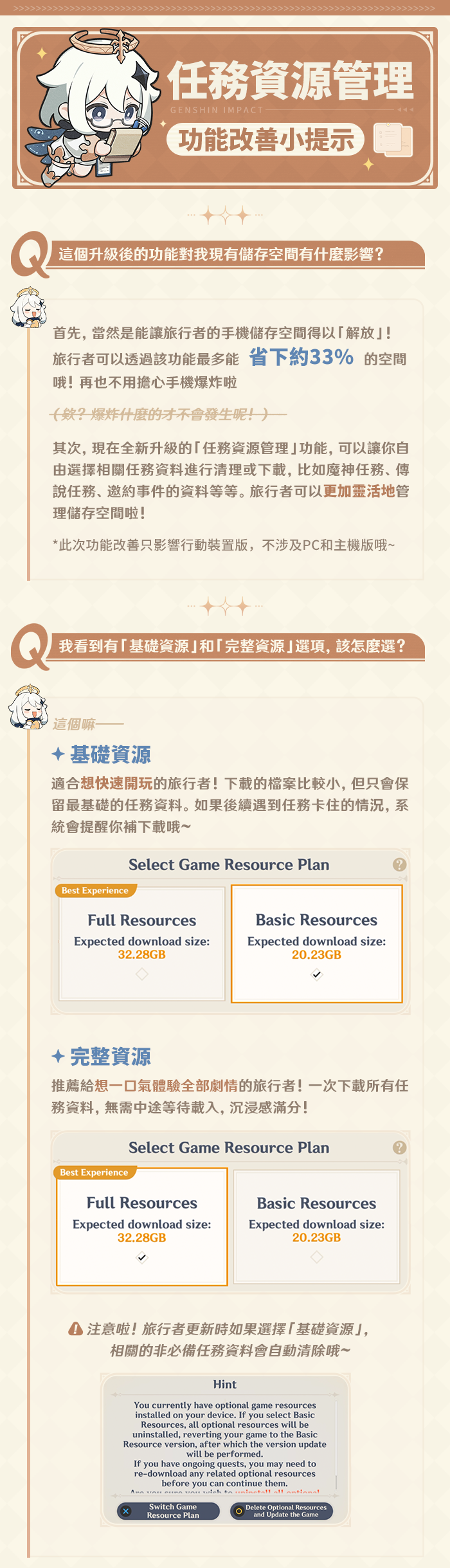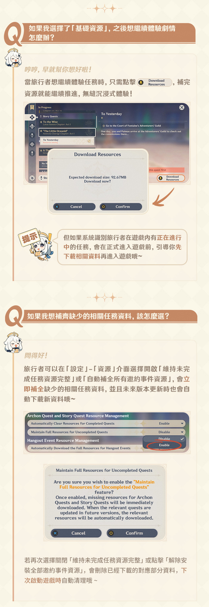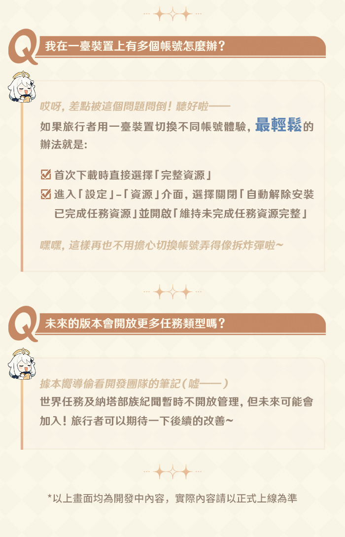是不是還有點無從下手?別擔心!為了讓大家的冒險更順暢,這裡整理了最容易被問到的重點問題!比如「資料怎麼選擇?」、「刪除資料後我體驗的劇情怎麼辦?」……跟派蒙一起來看看吧!