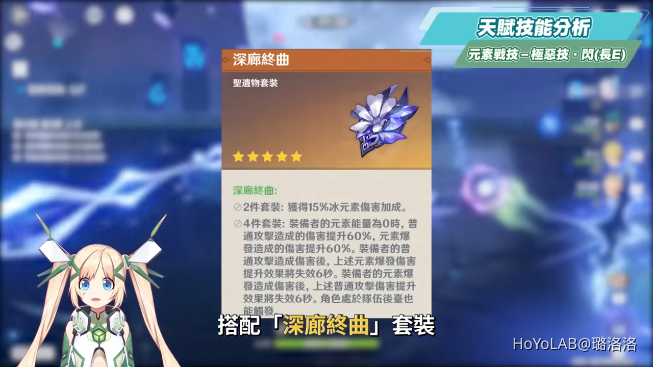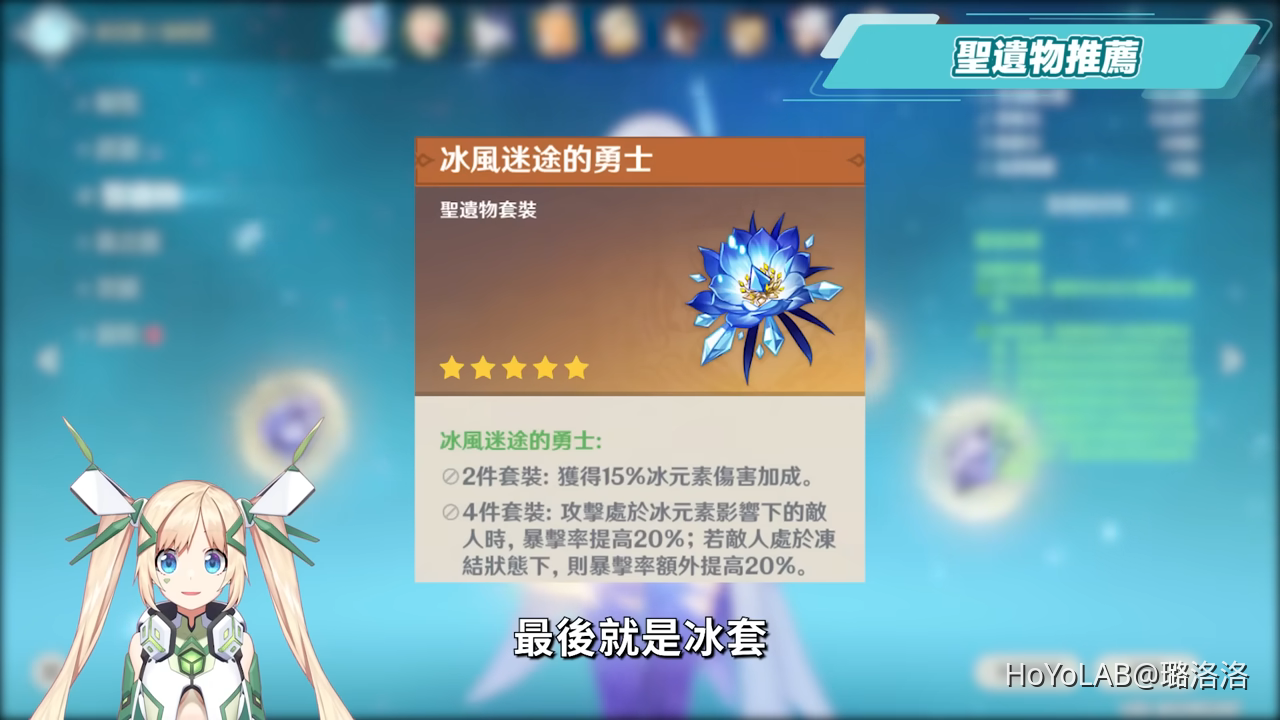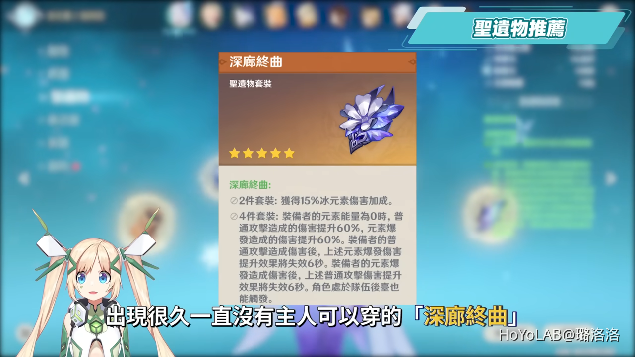 最後就是冰套,但這套就必須得要建立在敵人可以被凍結的情況下效益最高,因此也是盡量往前面兩套去做畢業目標最好。其他的套裝數值上就會差距得比較多,加上「深廊終曲」和「逐影獵人」也都是實裝了好一陣子的聖遺物了,而且「逐影獵人」也可以在合成台三換一,因此其他套裝就不做推薦了。