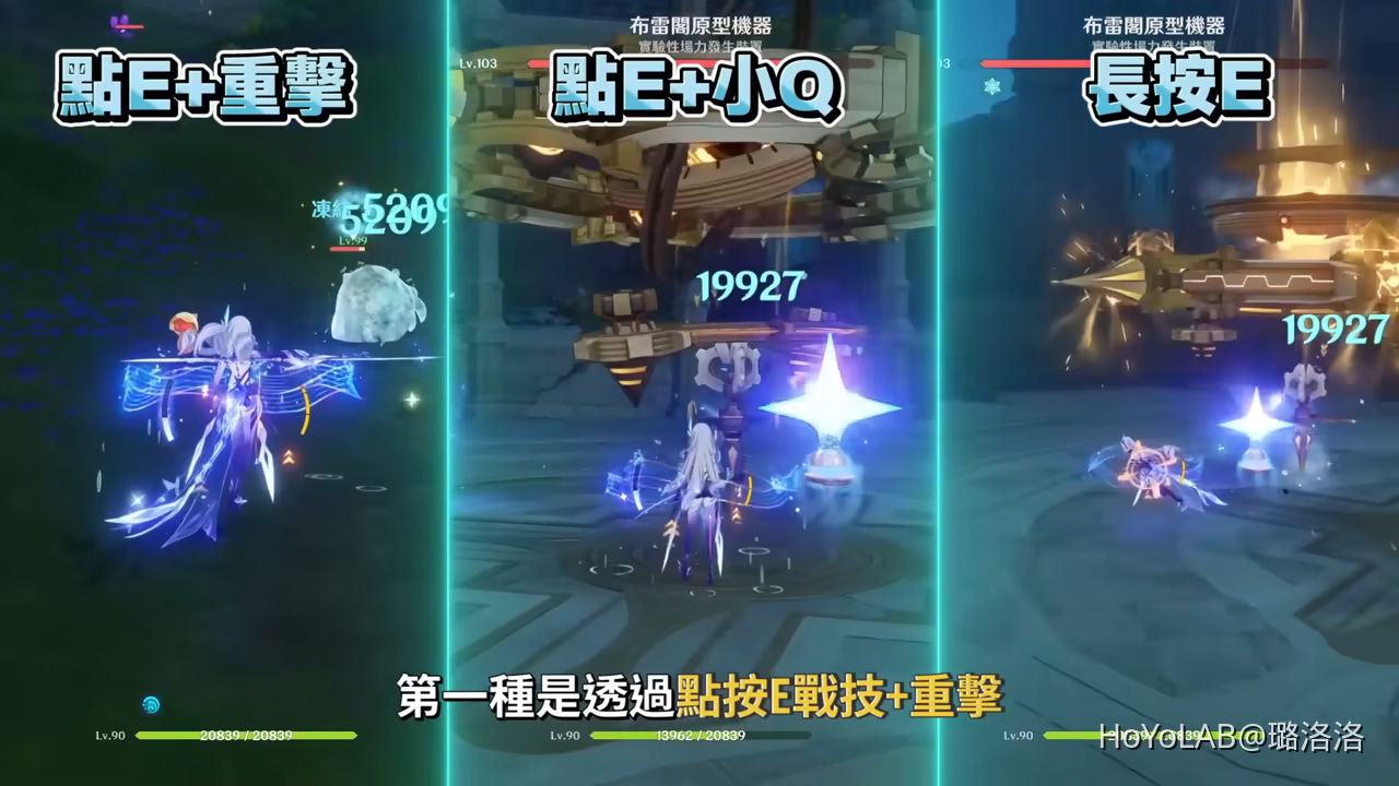 而當場上有「虛境裂隙」時,我們可以有3種方式來吸收,第一種是透過點按E戰技+重擊,第二種是點按E+Q,第三種是長按E進入高速移動狀態,接近時就會自動吸收。