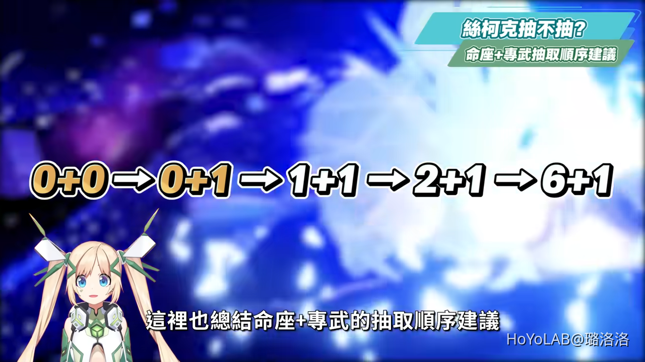 這裡也總結命座+專武的抽取順序建議,抽到0命絲柯克後,假如你有「霧切之回光」、「波亂月白經津」、「磐岩結綠」這些比較好的五星武器下位替代的話,還想再提升,可以優先考慮命座,若沒有,那麼就看武器歪了的情況你比較可以接受,還是角色歪了的話你比較可以接受,洛洛會建議可以先往0+1抽取,畢竟這次武器池歪了還算可以接受。後續就根據自己的荷包再往上抽到自己想要的程度。