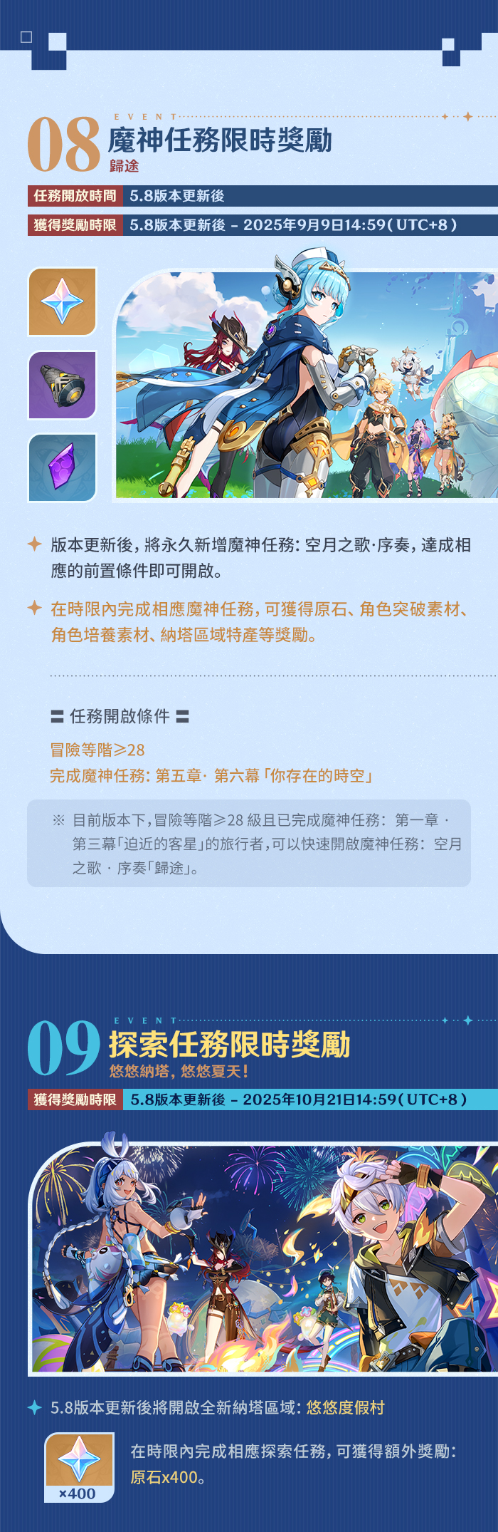 標籤:5.8 Genshin Impact 原神 活動 活動快報 繪夏!烈日?度假村! 遊戲官方公告