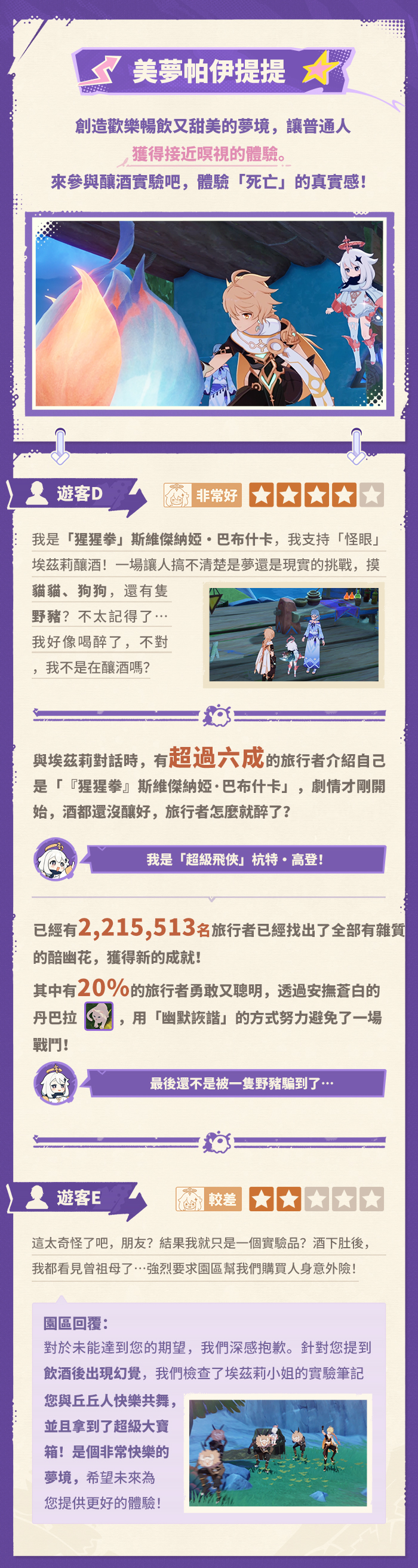 在悠悠度假村打卡後感覺如何?不知道大家在逛度假村的旅途中有沒有觸發到「隱藏任務」?歡迎來到「悠悠度假村評價專欄」,一起來看看遊客們開啟隱藏任務後的遊玩評價吧~