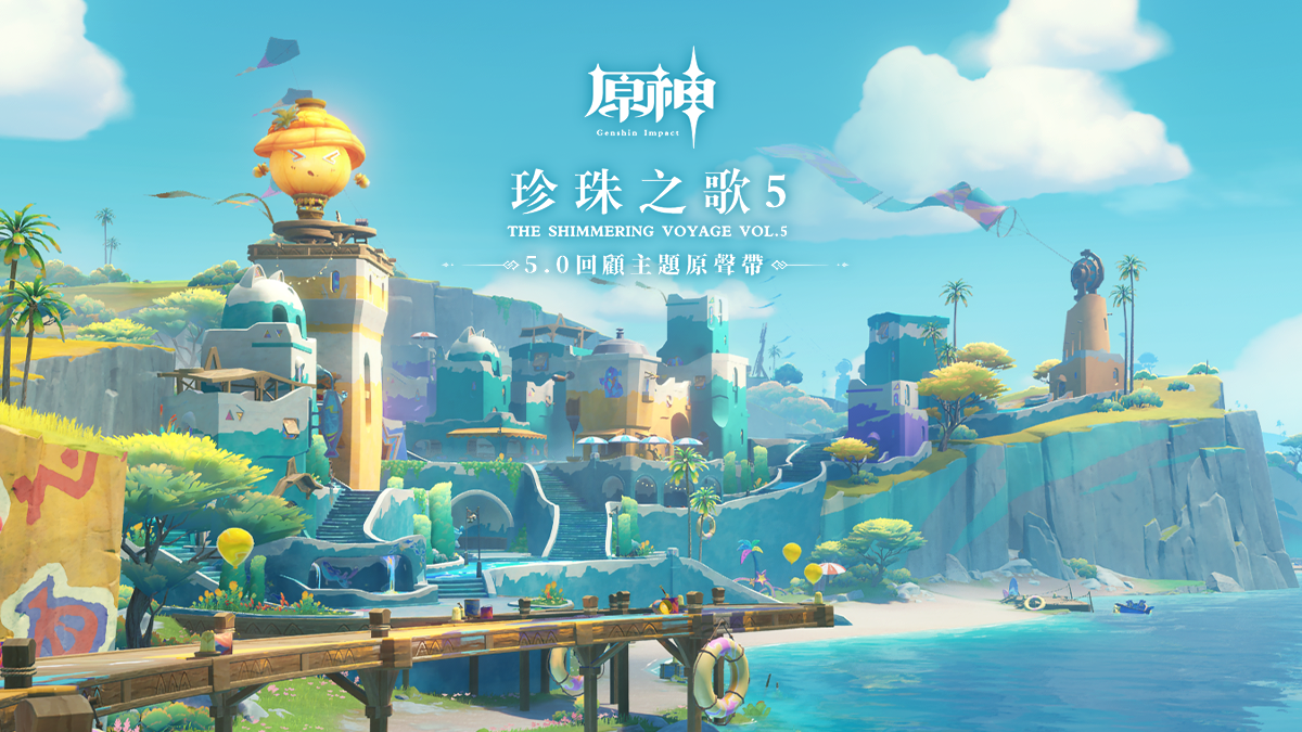 《原神》5.0回顧主題原聲帶《珍珠之歌5 The Shimmering Voyage Vol. 5》正式上線,專輯分為《長夏晚風欣 Joy Upon the Endless Summer Draft》、《彼此之念 Fate Drawn Asunder》及《迸躍滅劫之幸 Luck That Leaps Through the Doom》3張CD,共收錄59首由HOYO-MiX音樂團隊為《原神》創作的原聲音樂。