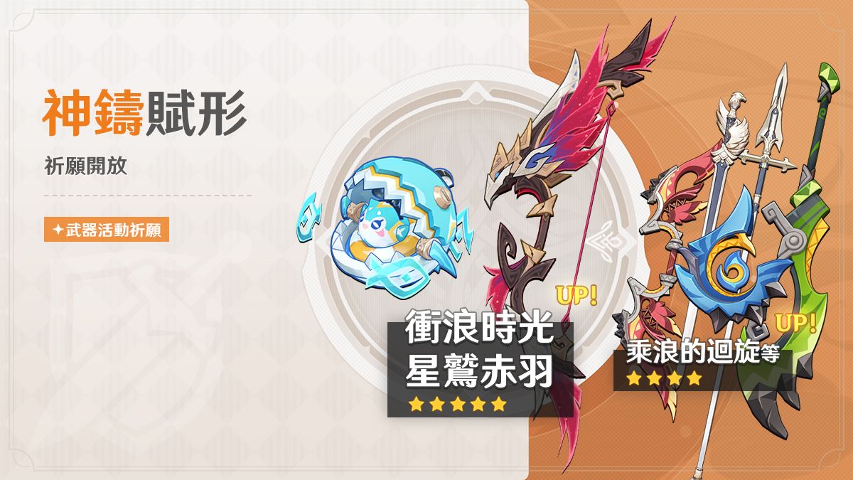 「神鑄賦形」祈願:「法器·衝浪時光」、「弓·星鷲赤羽」機率UP!
