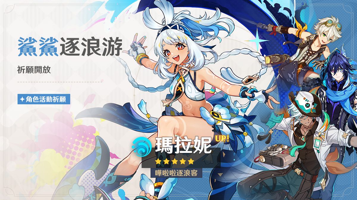 「鯊鯊逐浪游」祈願:「嘩啦啦逐浪客·瑪拉妮(水)」機率UP!