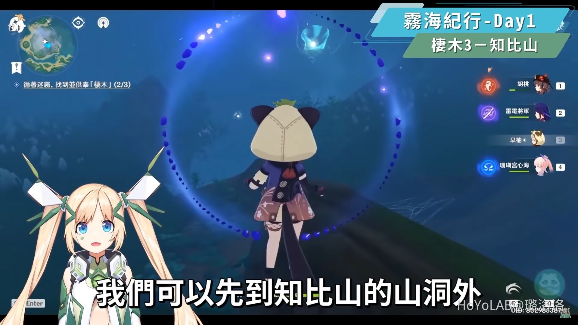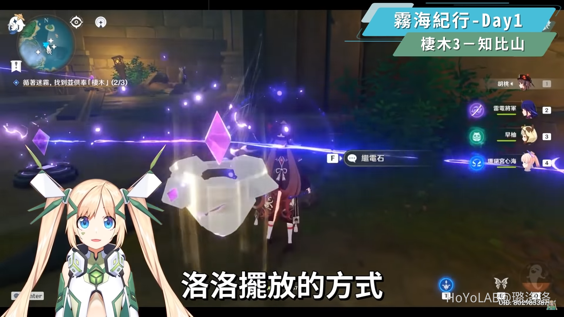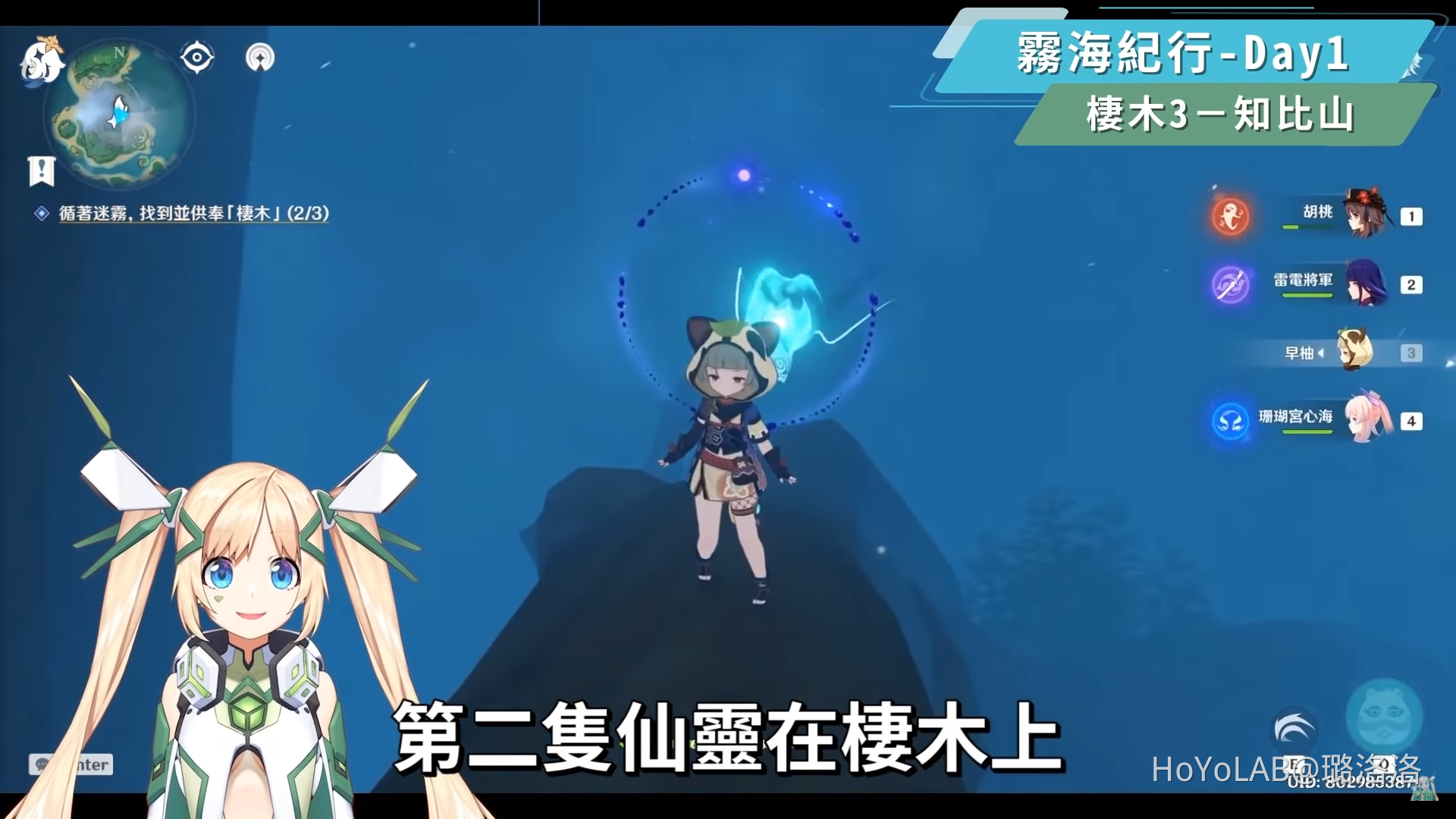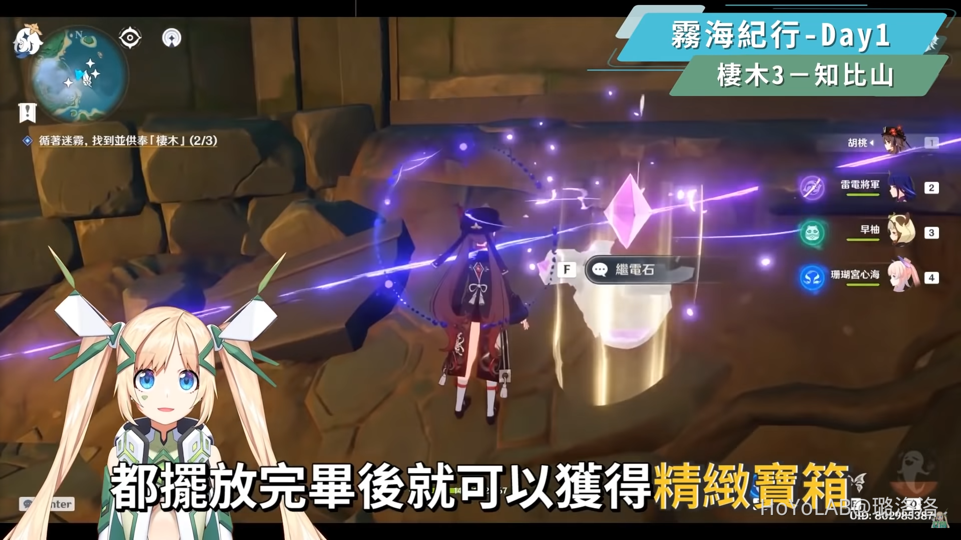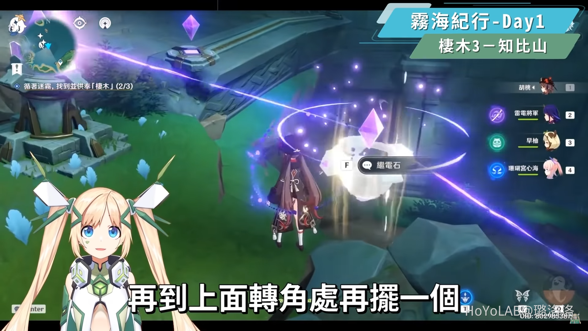 第三天先跟著指引去找阿釜,之後再前往鶴觀,一樣從對應的石門進入讓霧消散,而後得知我們需要拆除之前供奉好的三座棲木,若是第一天有乖乖標點的話,就會比較容易找到之前棲木的位置,找到棲木後可以直接攻擊,攻擊到半血時會有能量球飛出,再透過小地圖提示來快速找到能量球,並且也可以善用冰火元素的弓箭系角色攻擊能量球少走一點路,像是安柏、埃羅伊、甘雨、宵宮等等。打完能量球再回來打掉剩下半血的棲木。