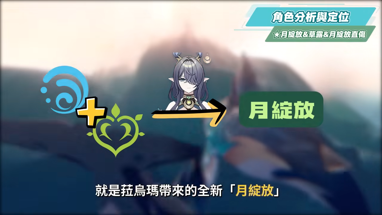 另外一個要了解的就是菈烏瑪帶來的全新「月綻放」,類似只要伊涅芙在隊伍中就能將感電反應轉變為「月感電」,只要菈烏瑪在隊伍中,就會使水+草元素觸發的綻放反應,轉變為「月綻放」。