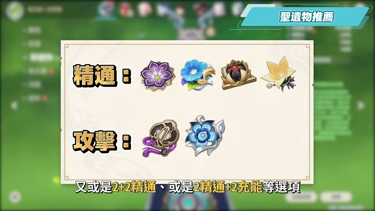 又或是2+2精通、或是2精通+2充能等選項。假如是想要滿命自己C的菈烏瑪,也可以換成月之一版本的另外一套新聖遺物「穹境示現之夜」。