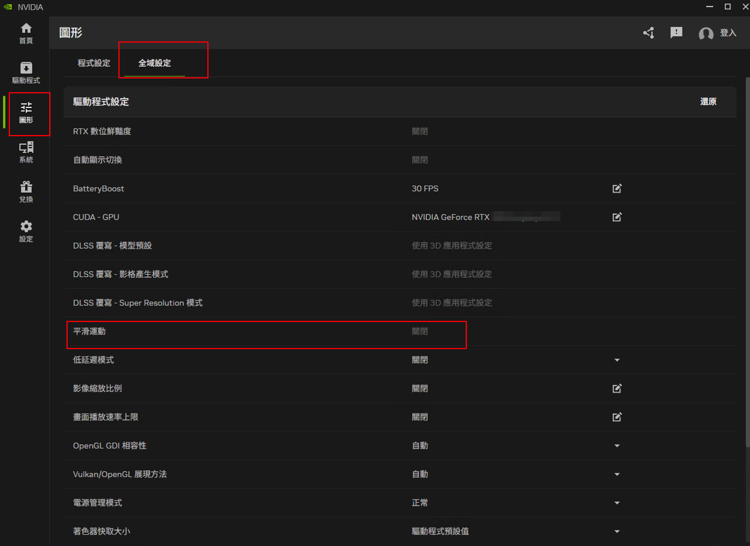 方法一:在「NVIDIA APP > 圖形 >全域設定」中,關閉AI補幀。