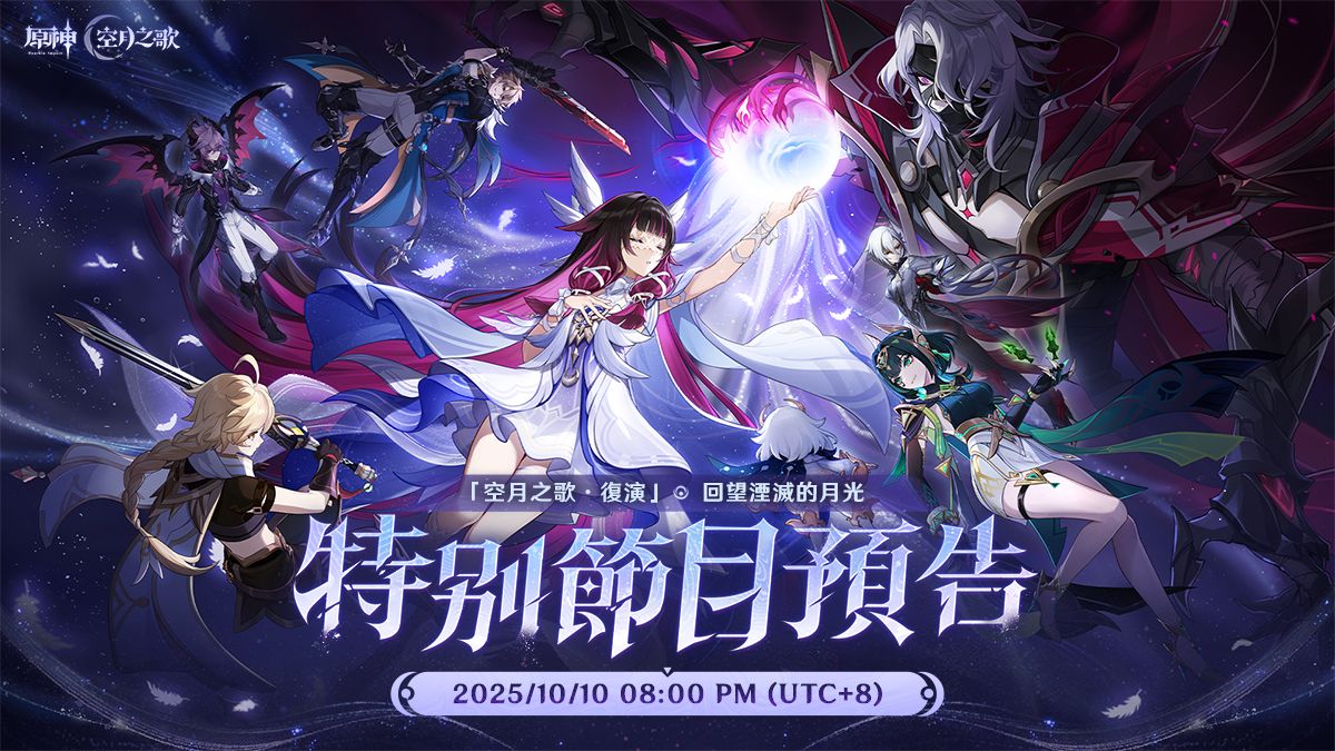 《原神》新版本特別節目將於2025年10月10日20:00(UTC+8)在官方Twitch與YouTube頻道開播。