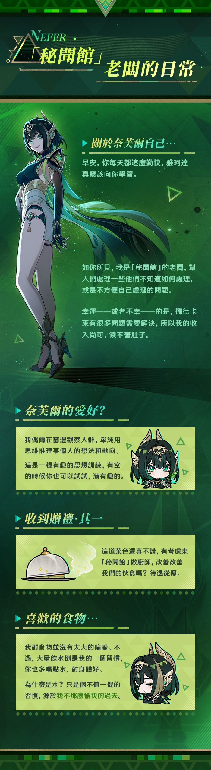 旅行者好呀!今天介紹的是神通廣大的「秘聞館」之主——奈芙爾。一起來瞭解她吧~