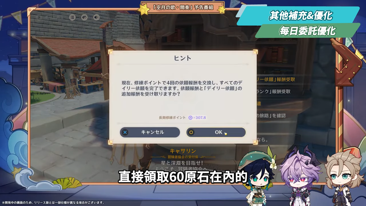 在每日委託的獎勵流程也進行相關優化,後續只要消耗歷練點後,就可以直接在凱瑟琳那邊直接領取60原石在內的每日委託相關獎勵,凱瑟琳的話越來越少了呢。