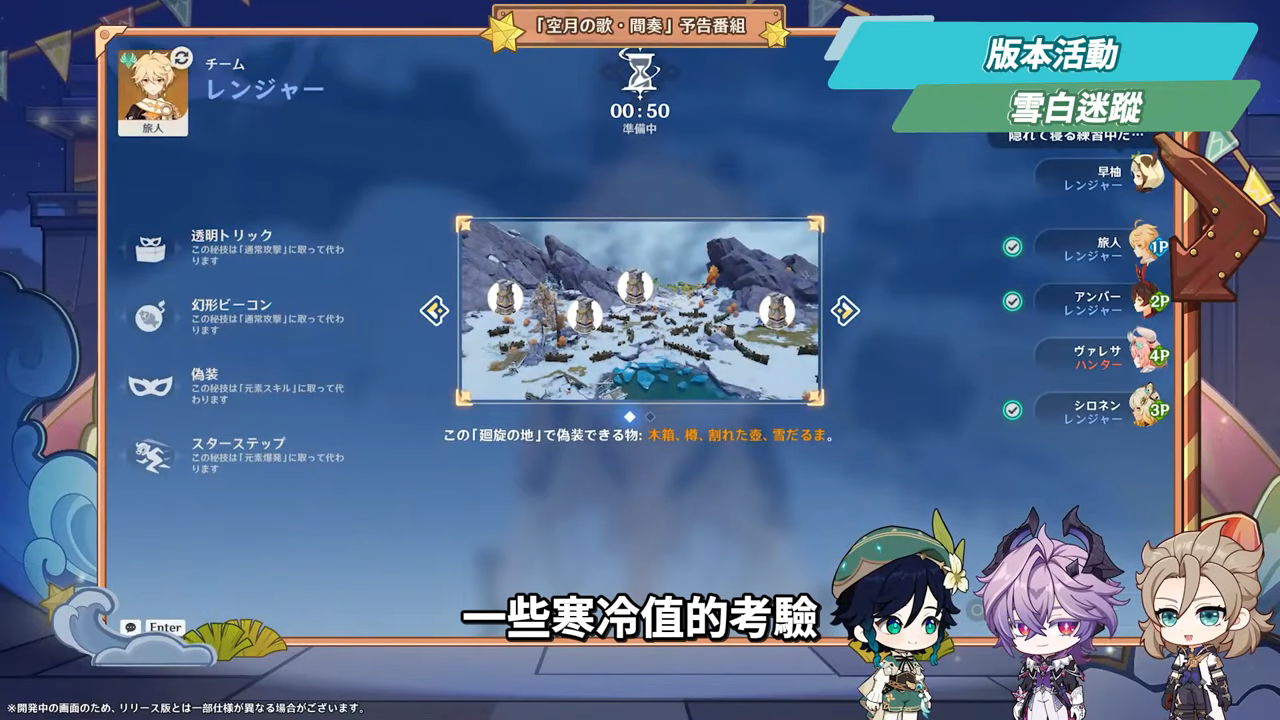 首先「雪白迷蹤」的活動,可以看成是「風行迷蹤」的雪山版本,由於在雪地,因此也會需要面臨一些寒冷值的考驗,並且還會有我們熟悉的一些小夥伴,也會加入到遊俠的行列,例如可以抓到早柚變身的雪人等,抓到這些角色還可以獲得額外的分數。