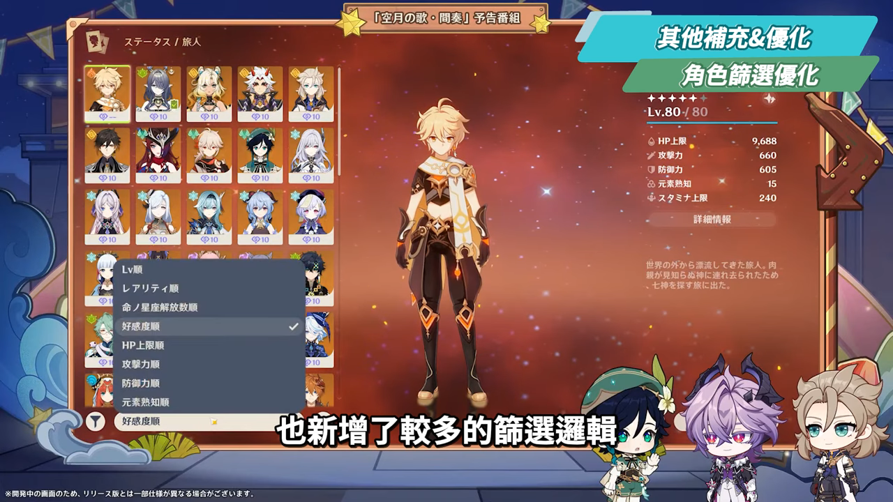 在角色篩選介面也新增了較多的篩選邏輯,方便旅行者能更快找到自己需要的角色。