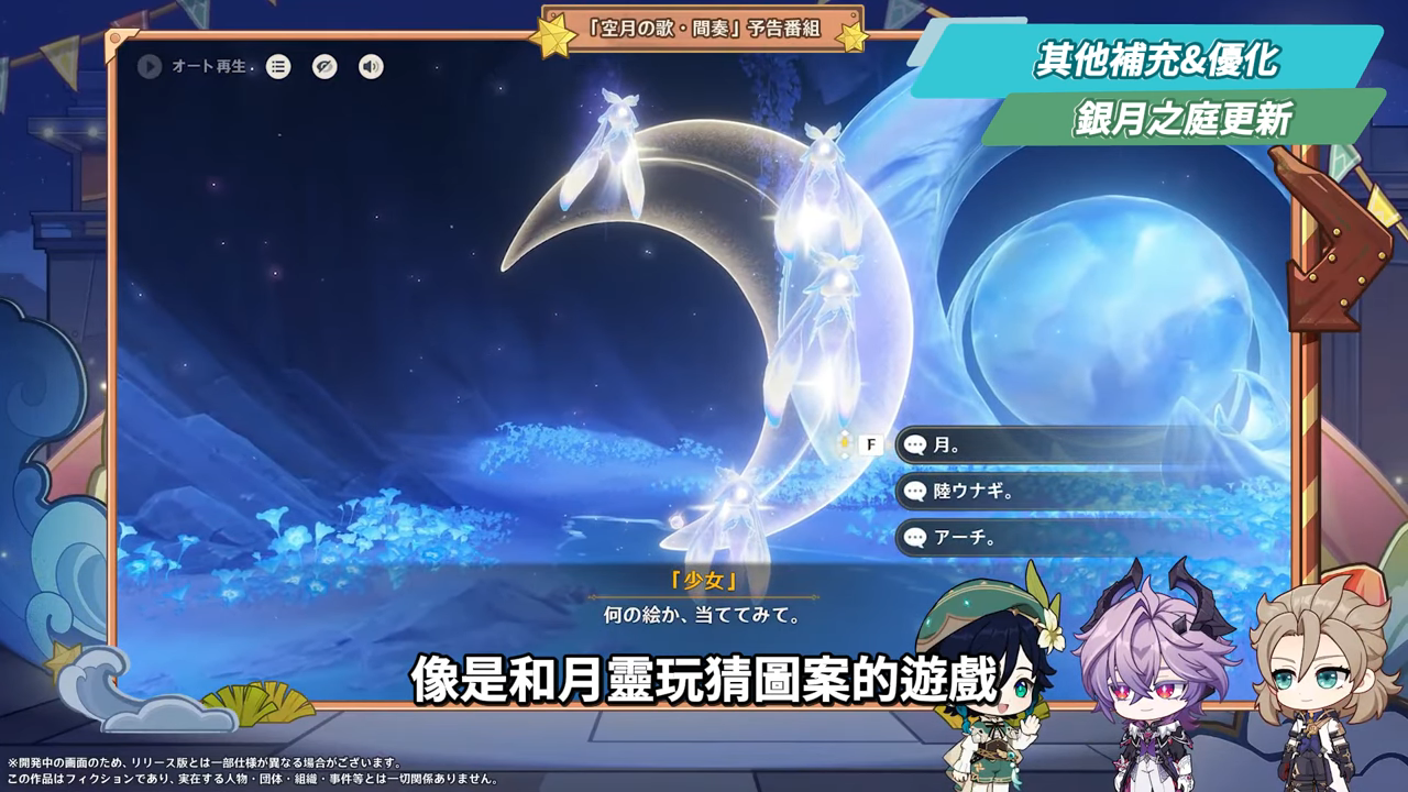 在新版本的「銀月之庭」中,我們和少女、月靈之間,也會發生不少的新故事,像是和月靈玩猜圖案的遊戲、或是為少女調製她喜歡的飲品。