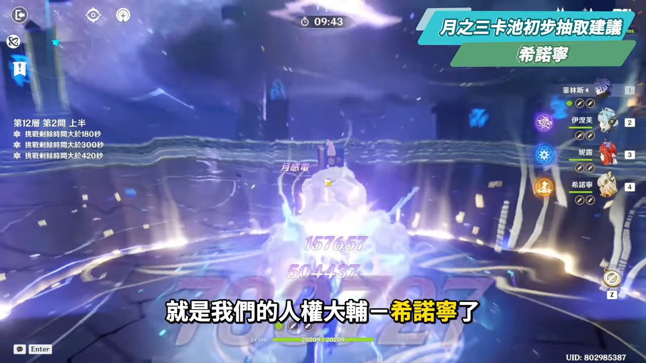 再來是整個月之三版本中,同樣也具備相當泛用的入隊空間,甚至幾乎說是人人必抽的,就是我們的人權大輔-希諾寧了,一人就兼具了高額減抗、增傷、治療,2命更是有更強的質變效果,也讓希諾寧可以搭配岩C來組隊,同時也是納塔戰艦必備的關鍵隊友。希諾寧可以入隊的空間相當廣,相關機制和組隊都可以查看先前洛洛製作過的希諾寧影片,偉大無須多言。加上希諾寧0命就是完全體,武器再帶上滿精西風劍就輕鬆畢業,沒有0命希諾寧的旅行者,務必優先擁有0命希諾寧,再去抽這一版本其他自己想要的角色。